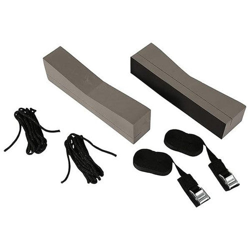 Simple, convenient kits for carrying kayaks on car roof. Angled foam blocks cushion kayak securely and prevent scratches to your car top. Straps are sturdy poly web with vinyl-coated clips