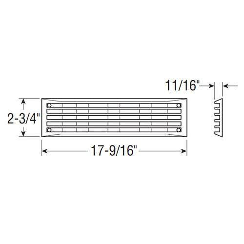 Clean, contemporary, louver design. Corrosion-resistant ABS plastic. For 3" or 4" I.D. ventilation system. Requires 1341 collector box for 3" system, or 1342 for 4" system. Install with #8 screws. Sized for installation even on highly-contoured decks.